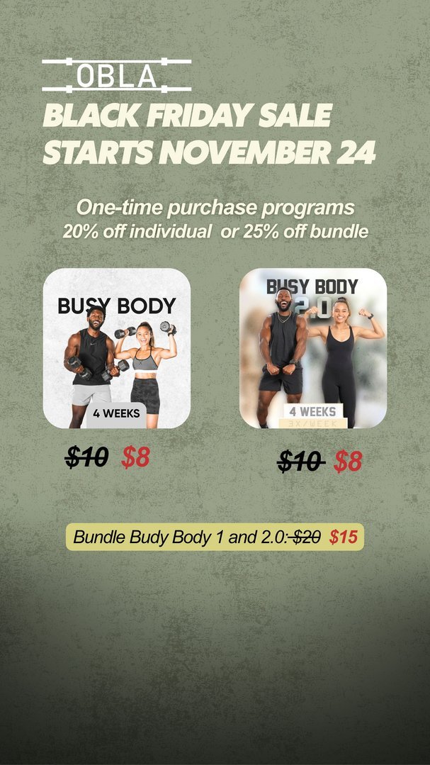 The Busy Body program was designed for the busy seasons in our lives. We understand that we all have periods of time where our schedules may make it hard to be consistent in a program, and this is where the Busy Body programs come in; having 3 full body strength days to focus on each week, and fitting in other days of movement as our schedule allows.